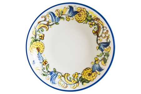 Глубокая тарелка Bonna Albufera ABF-MWBLM25CK используется для подачи первых блюд в ресторанах, кафе, на других предприятиях общественного питания и в домашних условиях. Коллекция отличается традиционной для острова Сицилия росписью с цветочными мотивами. Модель круглой формы выполнена из высококачественного белого фарфора с декоративным узором на лицевой поверхности борта в сочетании синего и желтого тонов.